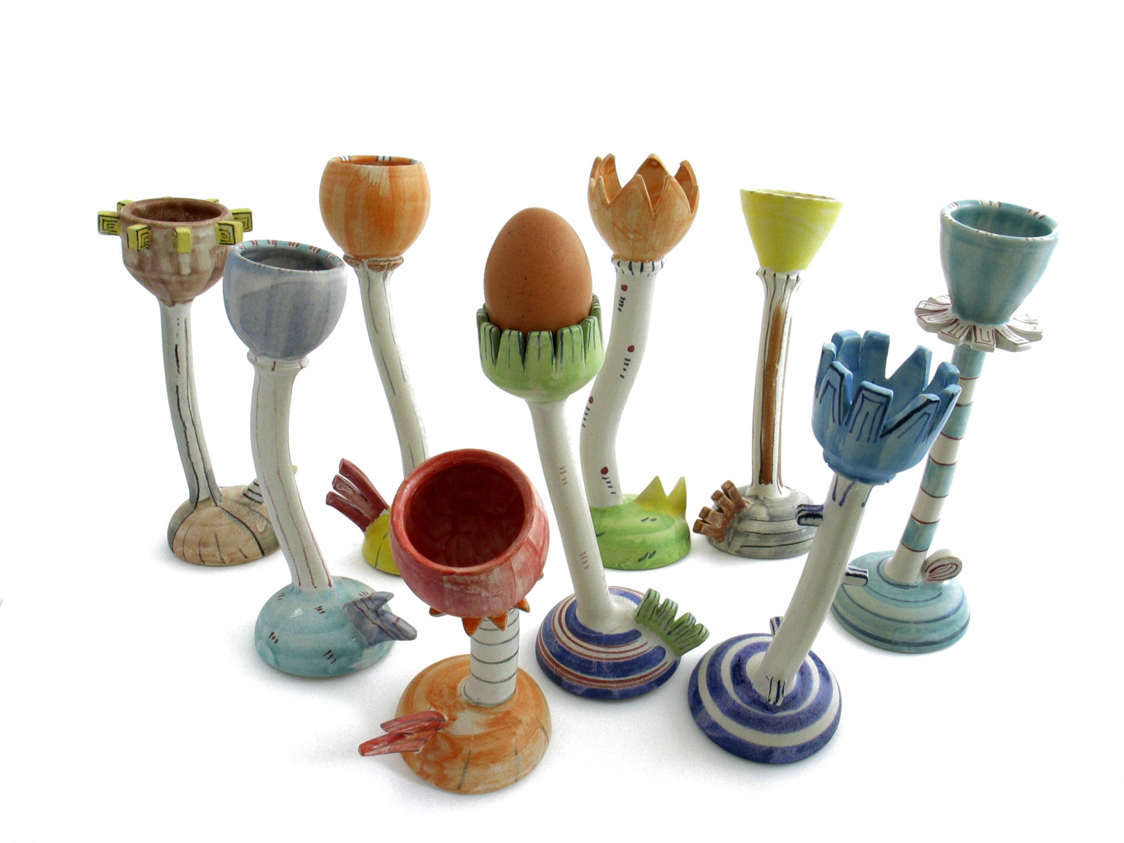 Da ist Bewegung drin. Ungewöhnliche Formen und moderne Dekors auf weißer Mattglasur kennzeichnen das Steinzeug-Geschirr von Cornelia Woitun. Das ist modern, alltagstauglich und wird nie langweilig. Ganz im Gegenteil. Lässt Woitun ihrer Fantasie erst richtig freien Lauf, entstehen witzige Gartentiere, bizarr-sympathische Urzeitviecher oder fröhlich bemalte Märchendosen mit figürlicher Bekrönung. Das muss man gesehen haben.